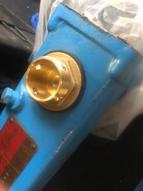 Installation required machining a 1" hole in the water jacket of the starboard exhaust manifold, and a 3/4" NPT thread in the inner exhaust. This was skillfully done by Bill Dodds at Peacock Industries of Baldwind, Michigan The chosen location was opposite to the number 7 (foreward-most) exhaust port, to keep it as far away as possible from the water entrance.